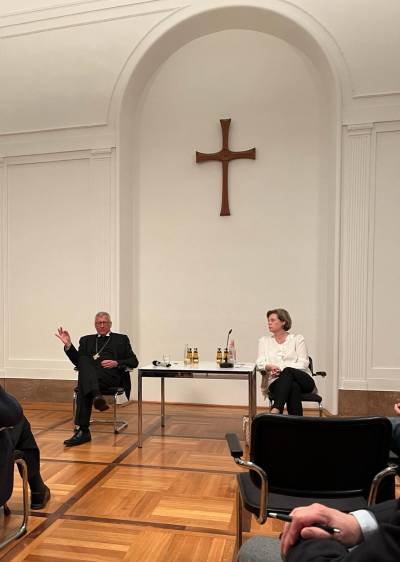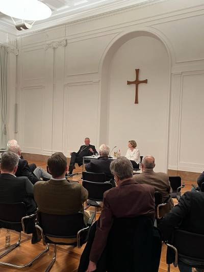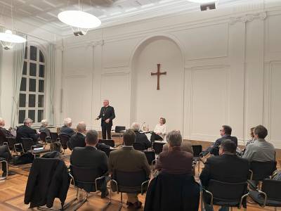 Der Gesprächsabend hätte aktueller nicht sein können. Bischof Felmberg ordnete in seinem Vortrag das Spannungsverhältnis zwischen Kirche, Militär und Staat ein. Seit dem russischen Überfall auf die Ukraine in 2022 hat sich auch für die Militärseelsorge vieles verändert. Im Anschluss gab es einen spannenden Austausch über die große Bedeutung der Seelsorge für die Soldatinnen und Soldaten der Bundeswehr.
